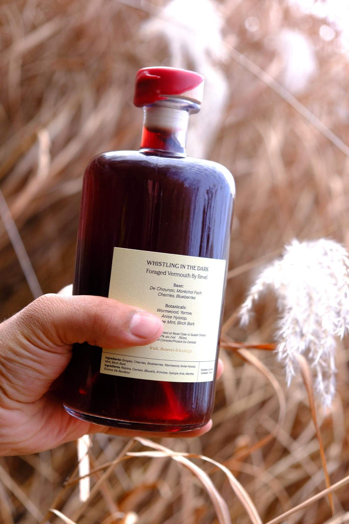 Whistling in the Dark is a sweet red vermouth, made seasonally with botanicals from Ontario only. It was the first vermouth we ever made.